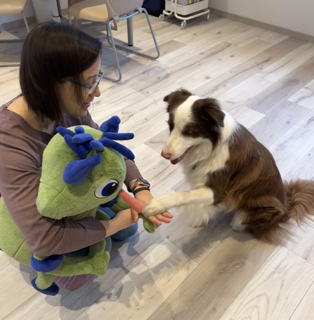 Ich habe meine Prüfung bestanden, jetzt darf ich mein Frauchen in ihrer Praxis bei der Arbeit mit Kindern und Erwachsenen unterstützen, Mut machen, motivieren und helfen, spielerisch Neues zu lernen. Ich freue mich sehr, Kinder und Erwachsene auf ihrem Weg zu begleiten und sie zu ermutigen, über sich hinauszuwachsen.